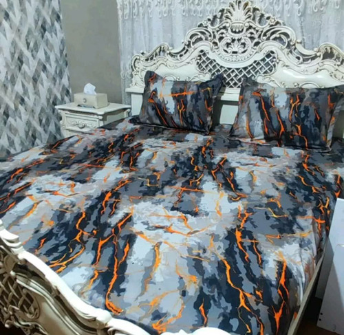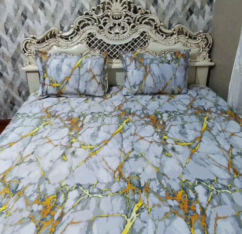 کاور تخت دو نفره طرح سنگ مرمر طوسی برند خوشنام هگمتان کد 002