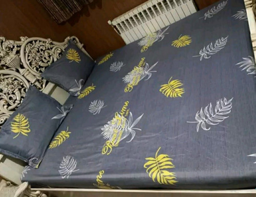 کاور تخت یک نفره به همراه روبالش طرح شن ریز کش دوزی برند خوشنام هگمتان