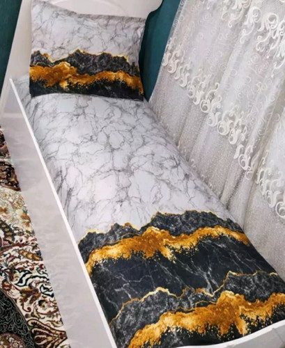 کاور تخت کش دوزی یک نفره طرح سنگ مرمر برند خوشنام هگمتان