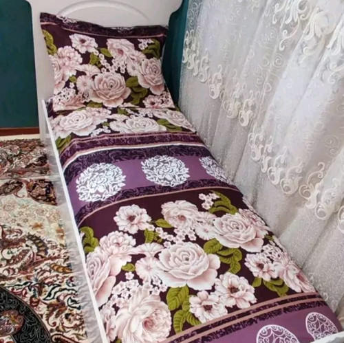 کاور بالشت و کاور تشک تخت کشدار یک نفره طرح گل کاغذی