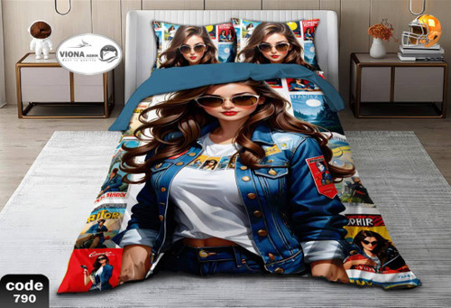 رو تختی یک نفره دخترانه 4 تکه میکرو فایبر مخمل برند خوشنام هگمتان کد 790 ویونا آکرین