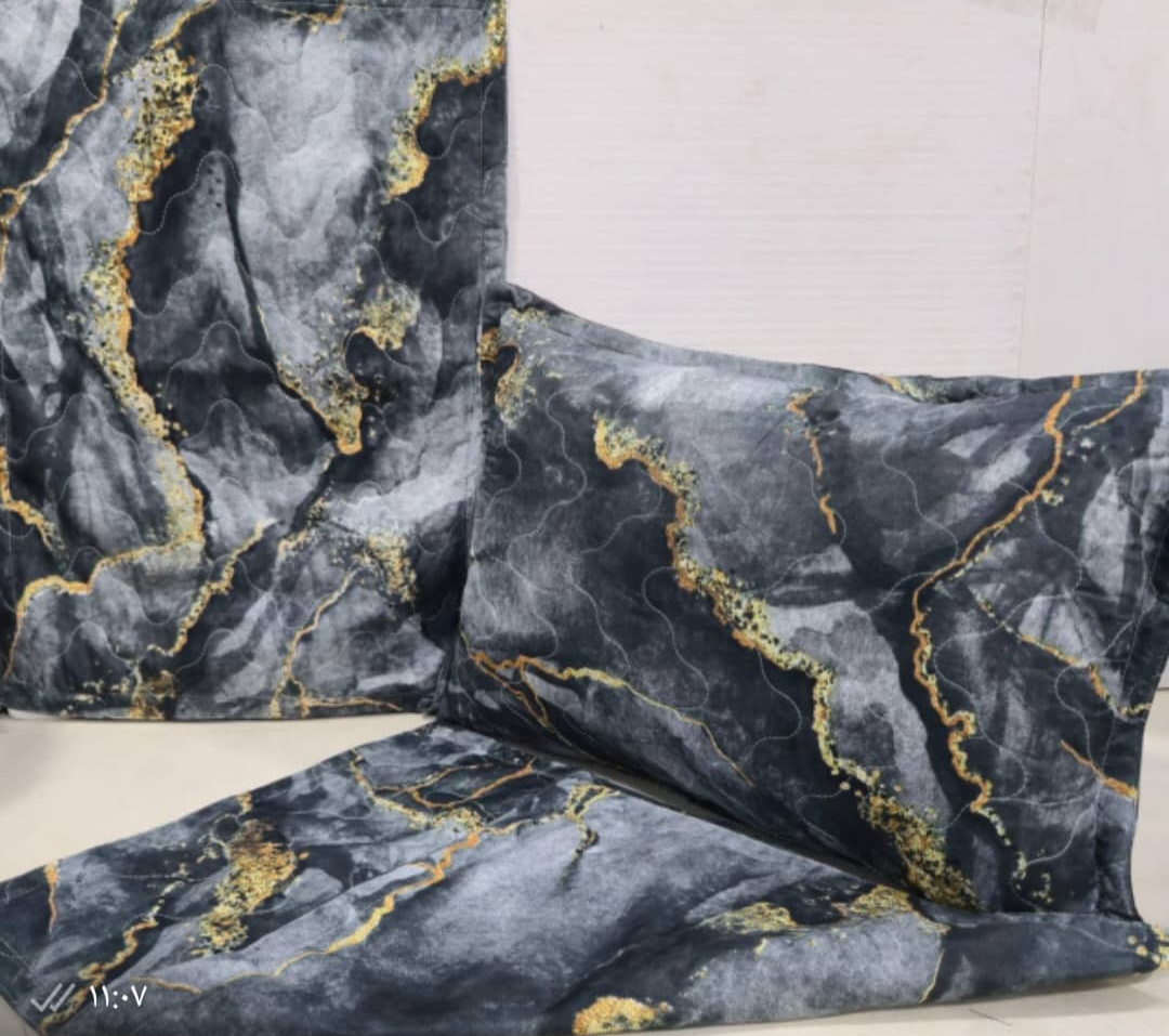 کاور تخت دو نفره طرح سنگ مرمر طوسی برند خوشنام هگمتان کد 002