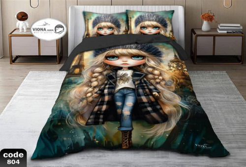 رو تختی یک نفره دخترانه 4 تکه میکرو فایبر مخمل برند خوشنام هگمتان کد 802 ویونا آکرین