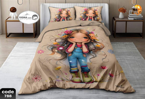 رو تختی یک نفره دخترانه 4 تکه میکرو فایبر مخمل برند خوشنام هگمتان کد 788 ویونا آکرین