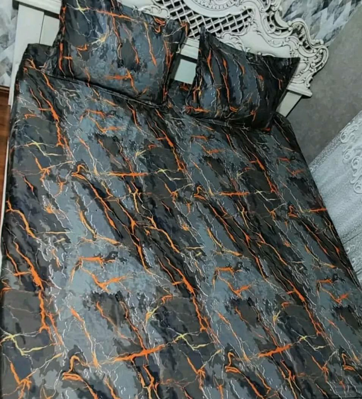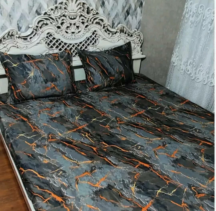 کاور تخت کش دوزی شده دو نفره طرح سنگ مرمر کد 300 برند خوشنام هگمتان