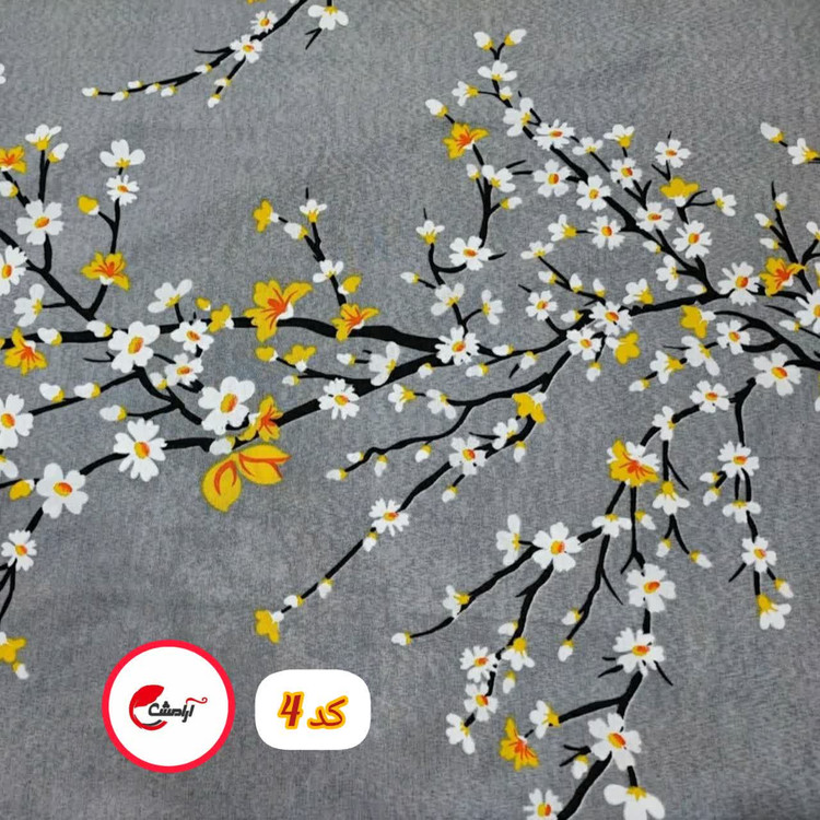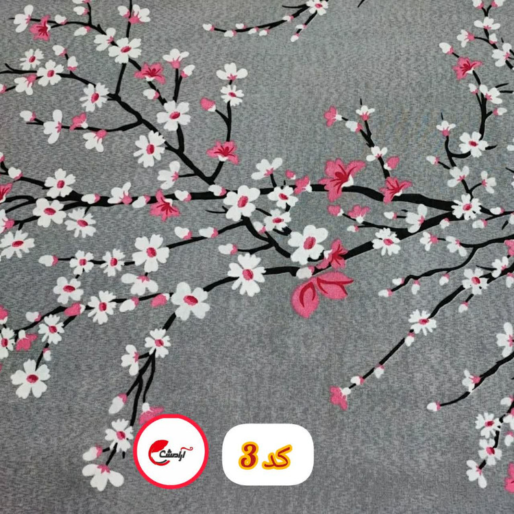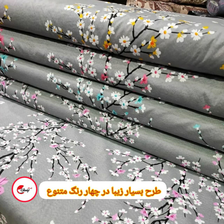 پارچه ملحفه طرح شکوفه های بهاری دو متر عرض صد در صد قابل شستشو