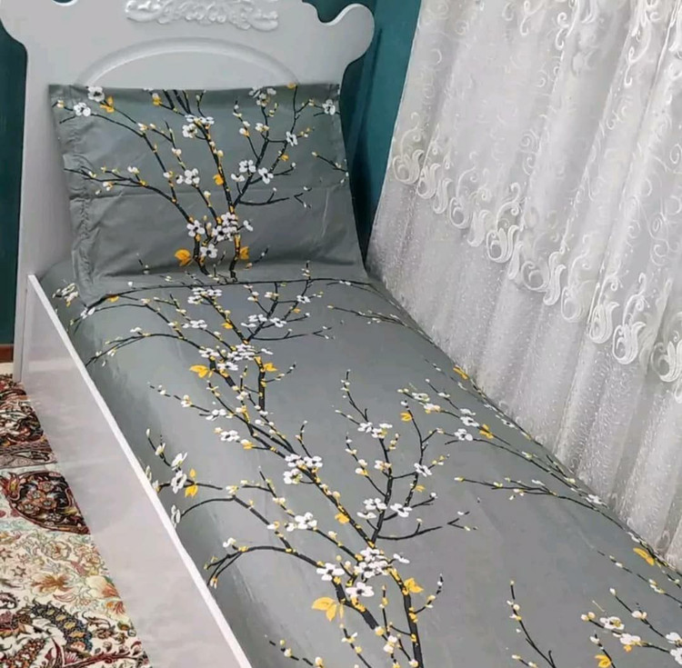 🔴کاور تخت یک نفره به همراه روبالش طرح شکوفه های بهاری کش دوزی