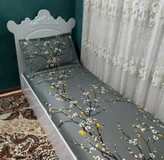 کاور تخت یک نفره به همراه روبالش طرح شکوفه های بهاری کش دوزی برند خوشنام هگمتان