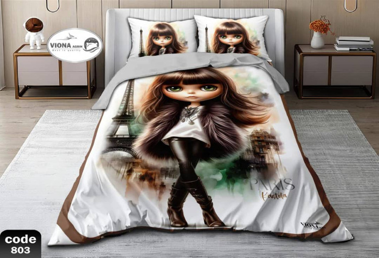 رو تختی یک نفره دخترانه 4 تکه مخمل میکرو فایبر برند خوشنام هگمتان کد 803 .یونا آکرین