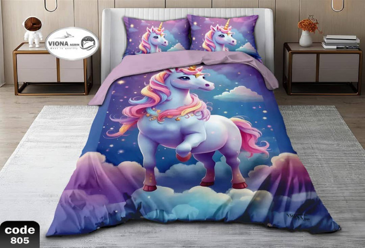 رو تختی یک نفره دخترانه 4 تکه میکرو فایبر مخمل برند خوشنام هگمتان کد 805 ویونا آکرین