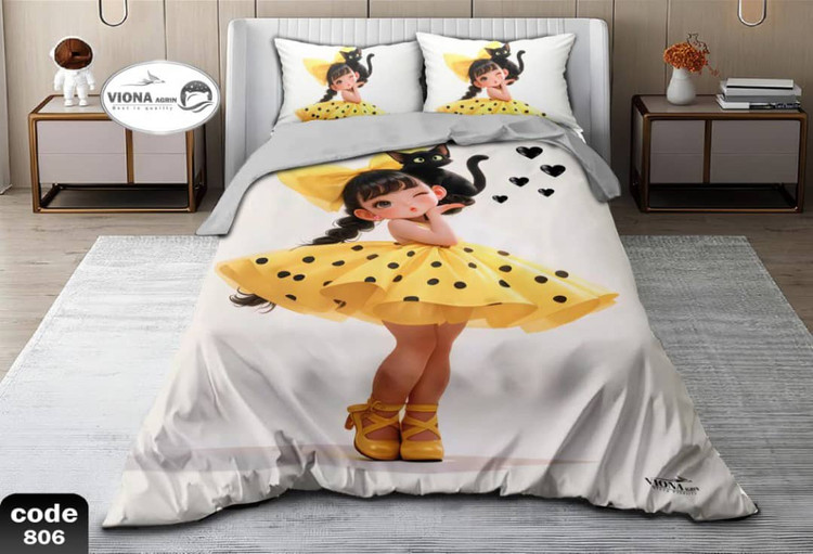 رو تختی یک نفره دخترانه 4 تکه میکرو فایبر مخمل برند خوشنام هگمتان کد 806 ویونا آکرین