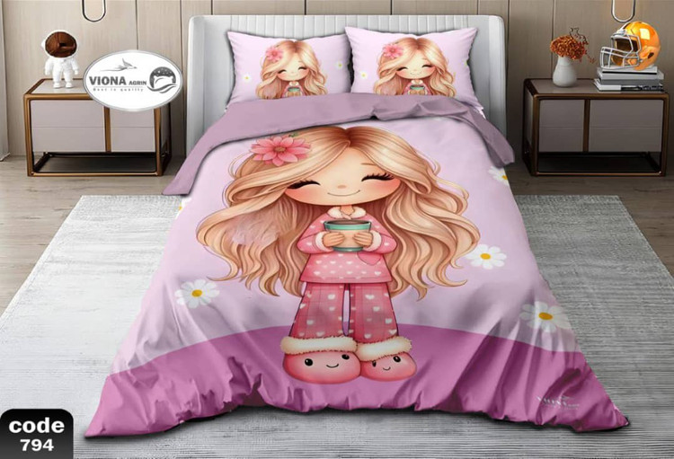 رو تختی یک نفره دخترانه 4 تکه میکرو فایبر مخمل برند خوشنام هگمتان کد 794 ویونا آکرین
