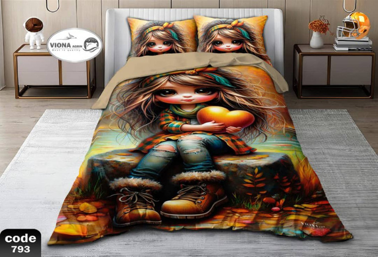 رو تختی یک نفره دخترانه 4 تکه میکرو فایبر مخمل برند خوشنام هگمتان کد 793 ویونا آکرین