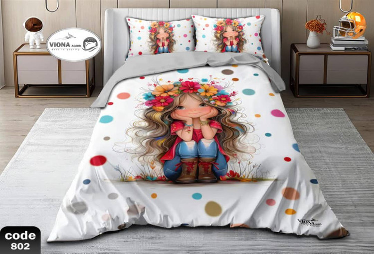 رو تختی یک نفره دخترانه 4 تکه میکرو فایبر مخمل برند خوشنام هگمتان کد 802 ویونا آکرین