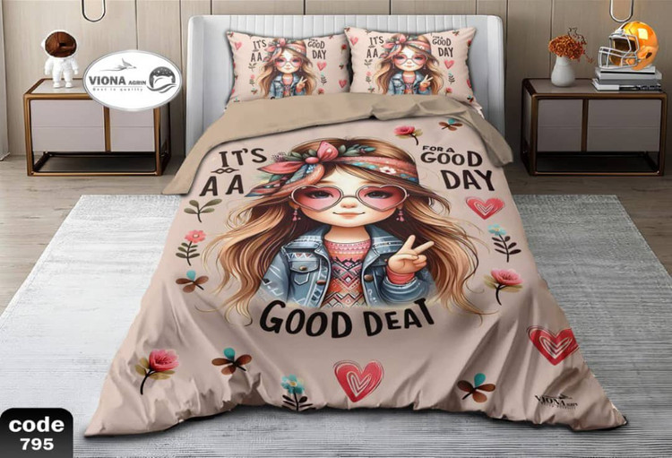رو تختی یک نفره دخترانه 4 تکه میکرو فایبر مخمل برند خوشنام هگمتان کد 795 ویونا آکرین