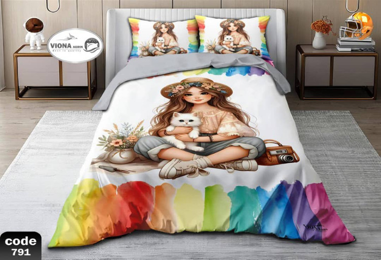 رو تختی یک نفره دخترانه 4 تکه میکرو فایبر مخمل برند خوشنام هگمتان کد 791 ویونا آکرین