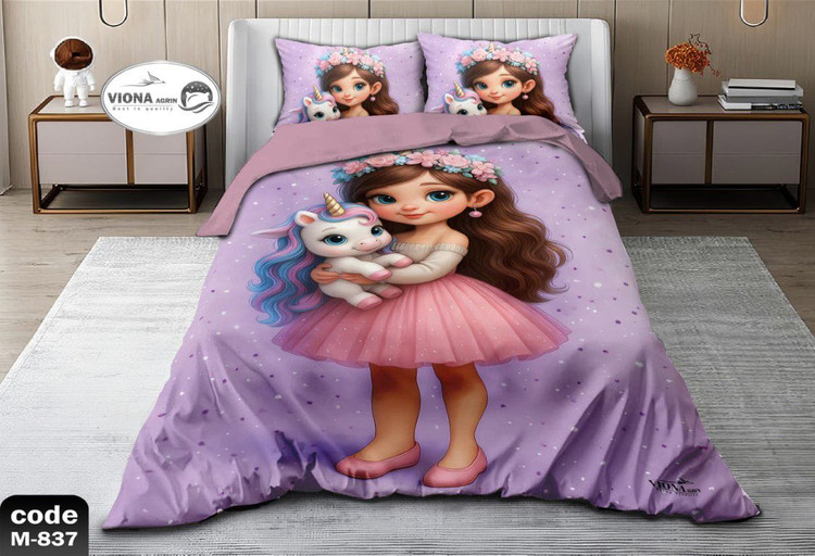 رو تختی یک نفره دخترانه 4 تکه میکرو فایبر مخمل برند خوشنام هگمتان کد 837 ویونا آکرین