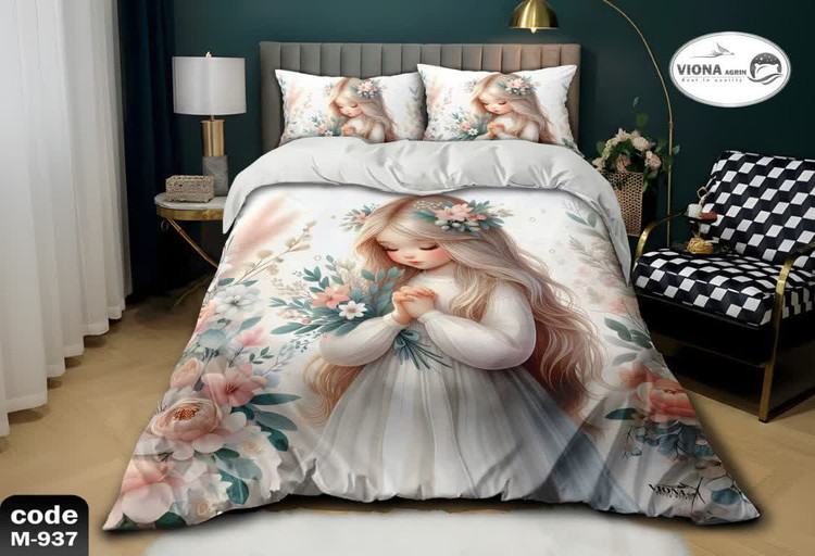 رو تختی یک نفره دخترانه 4 تکه میکرو فایبر مخمل برند ویونا آکرین کد 937