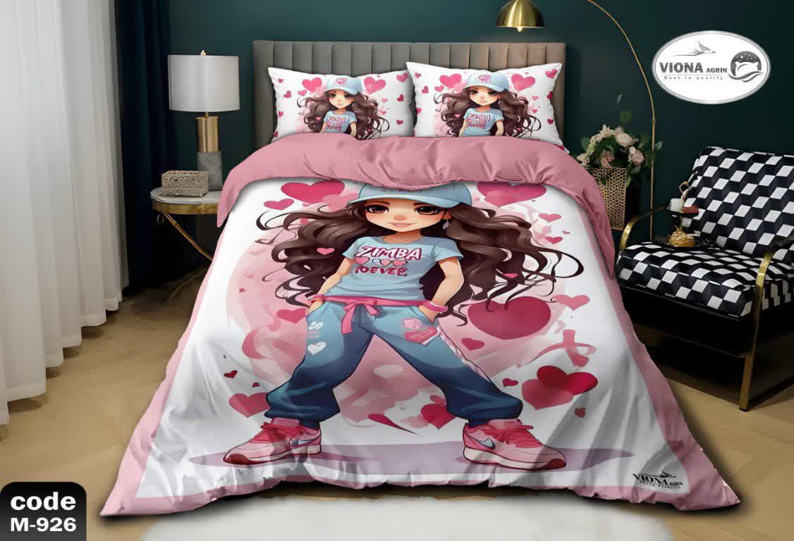 رو تختی یک نفره دخترانه 4 تکه میکرو فایبر مخمل برند ویونا آکرین کد 833