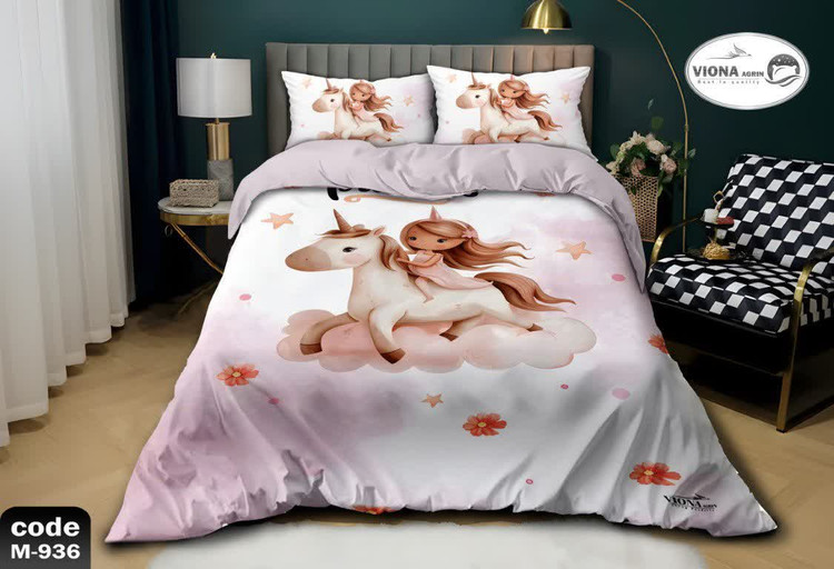 رو تختی یک نفره دخترانه 4 تکه میکرو فایبر مخمل برند ویونا آکرین کد 936