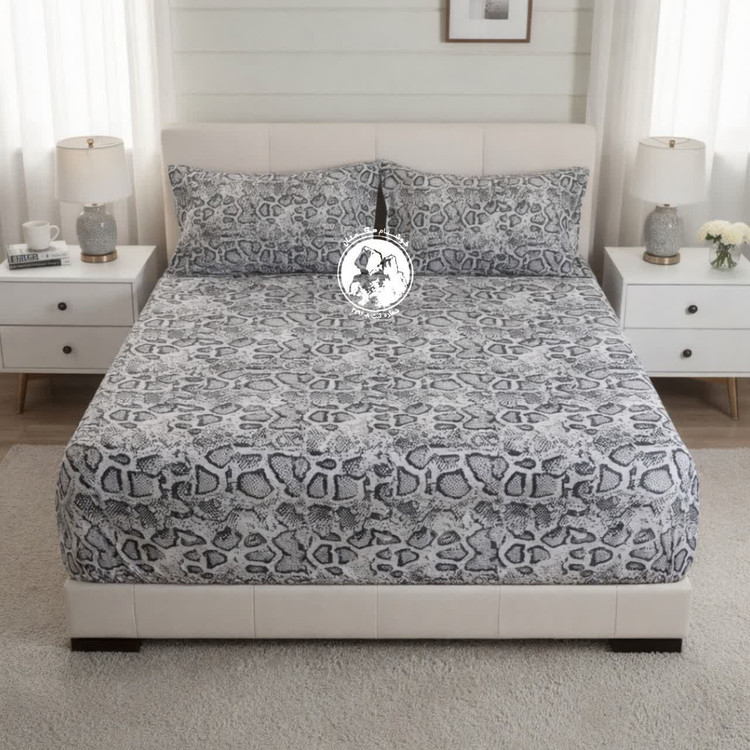 کاور تخت کش دوزی شده دو نفره طرح پوست ماری طوسی برند خوشنام هگمتان کد 876