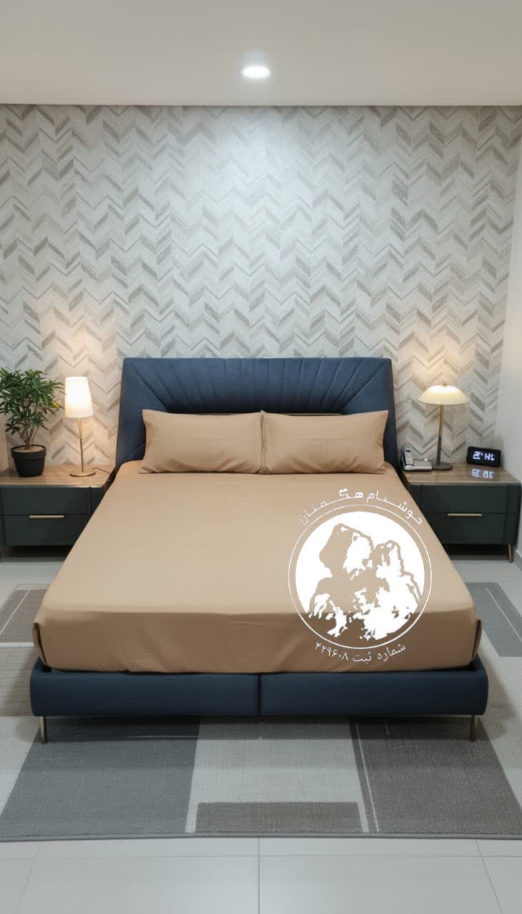 کاور تخت کش دوزی شده پارچه میکرو دو نفره نسکافه ای برند خوشنام هگمتان کد 118
